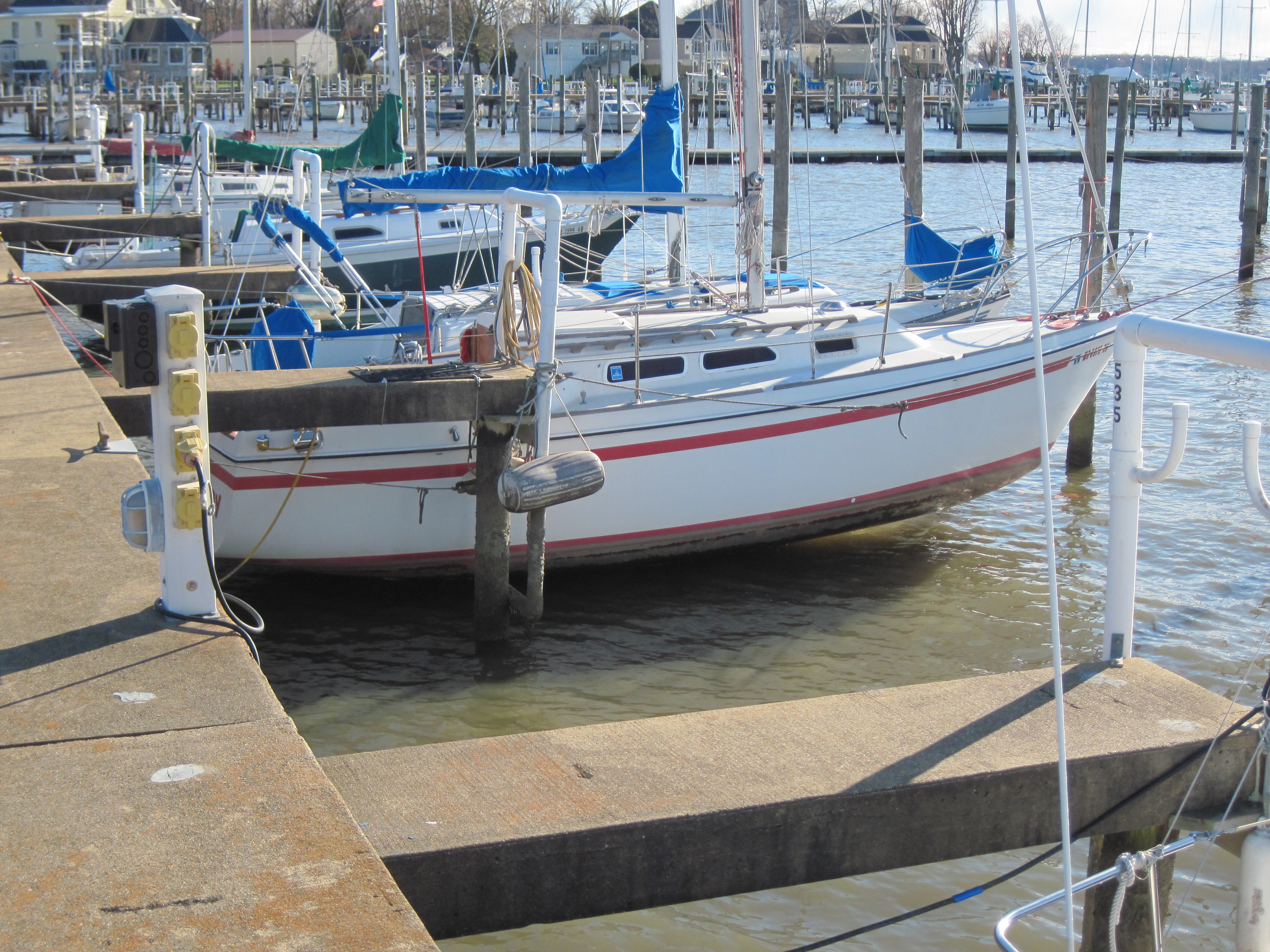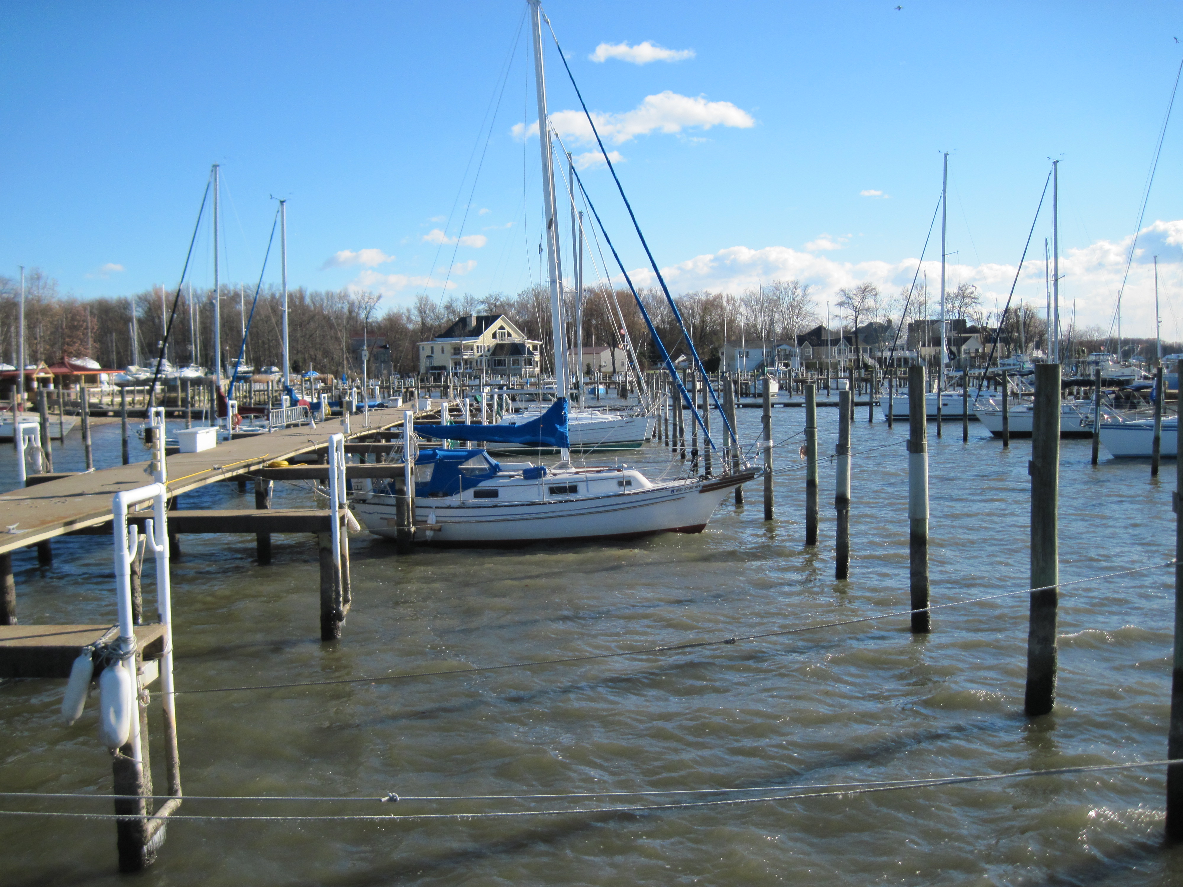 - Testing out the dock lines. Lots of boats this day sitting on their keels